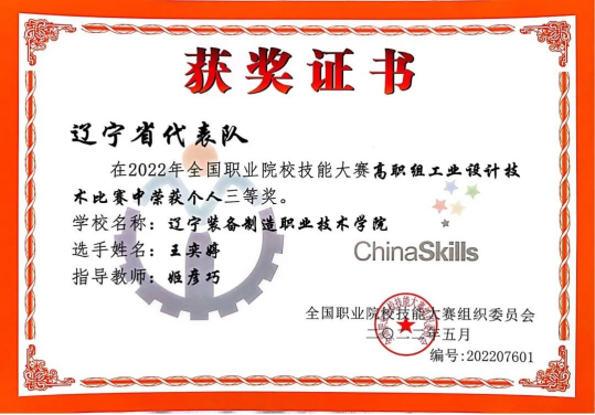 2022年全国职业院校技能大赛已圆满结束,我校机械工程学院作为代表辽宁省参赛的两个单位之一,在本次大赛中历经层层选拔、激烈角逐,机械工程学院安帅杰、吕品和姬彦巧带队指导的两支参赛队伍分别在“复杂部件数控多轴联动加工技术”“工业设计技术”赛项中取得三等奖的优异成绩,实现我校在全国技能大赛的新突破,该成绩也是目前为止辽宁省乃至东北三省最好成绩,为学院学校、为辽宁省争得荣誉。